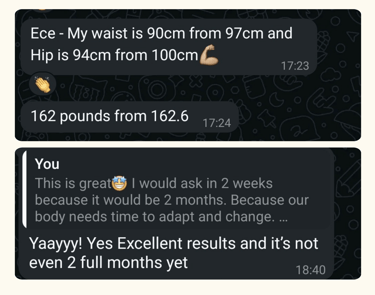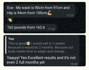 In less than 2 months, my client reduced her waist from 97 cm to 90 cm and hips from 100 cm to 94 cm — training just 2–3 times a week! Smart, consistent workouts = real results.