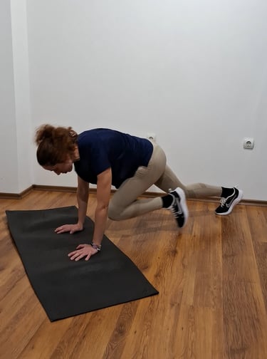From a plank position, you alternately drive your knees toward your chest in rapid succession—like running in place while hands are on the floor.